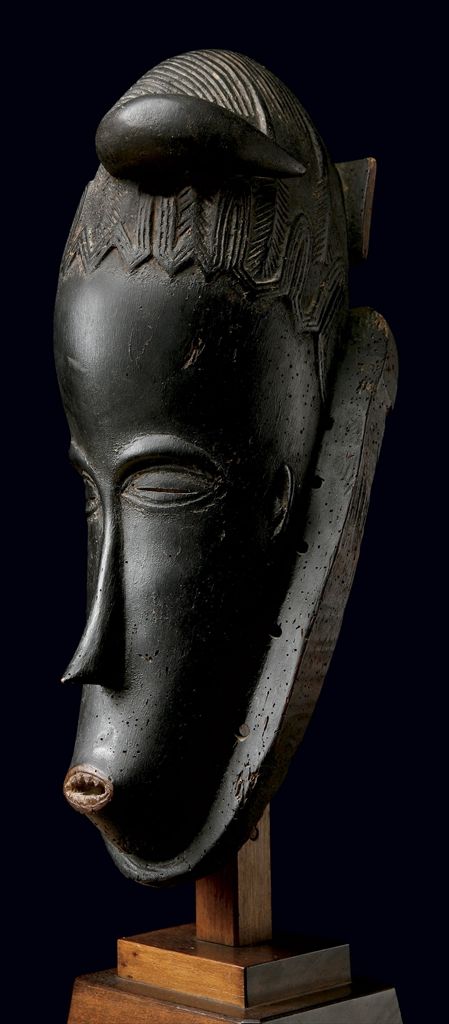 + He and other artists also looked toward West Africa for inspiration, making personal connections to the stylized masks and sculpture from Benin, Congo, and Senegal, which they viewed as a link to their African heritage.