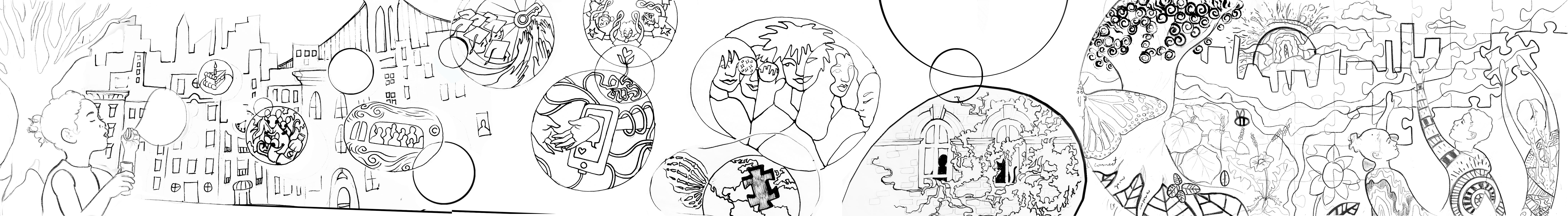 go engage with the existing mural we are designing an addendum to - take your sketchbooks! Keep track of what you notice because we will need it later! Facilitator will ask questions to start and Apprentices will figure out what they think/fee;/believe about it. - 30 minutes